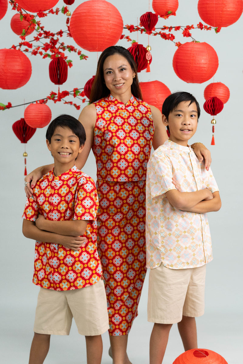 Discover our Chinese New Year 2026 collection, thoughtfully created in Singapore with families in mind. Each print is designed in-house by the Elly team and inspired by the festive season, offering a modern take on tradition. Crafted mostly from soft, breathable 100% cotton or our popular jersey with 5% elastane, our pieces keep little ones comfortable in Singapore’s warm, humid weather while looking their festive best.